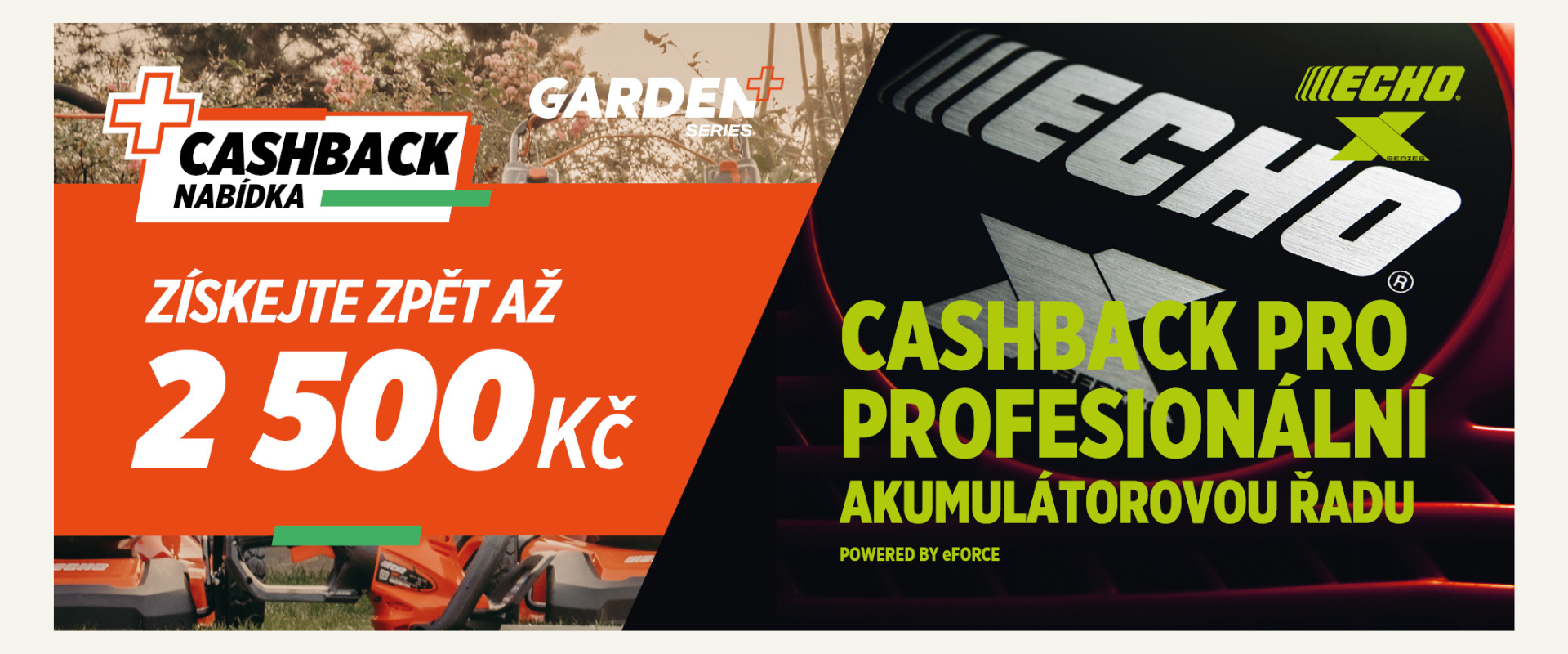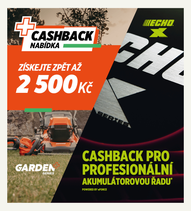 Spouštíme speciální CASHBACK akci na 40V a 56V aku program ECHO, díky které ušetříte tisíce korun – a to okamžitě při nákupu, bez čekání a bez registrace.